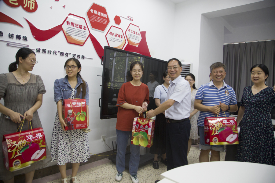 今年暑期,天气炎热,更加热火朝天的是各部门教职员工奋战在一线的拼搏场面。“教育部11项重点工程”、“双高”建设、数智校园建设、科研、基建、互联网+大赛……为了学校更好更快地发展,他们挥汗如雨,奋勇争先。8月15日下午,全体校领导带上水果亲切慰问了暑期坚守工作岗位的教职员工,诚挚感谢他们的辛勤付出。