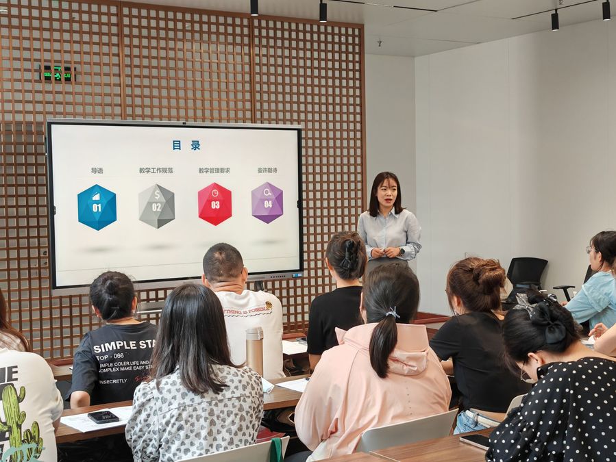 本期新教师校本培训由学校领导、校内外专家、优秀教师代表为新教师开班授课。校原党委书记陶书中聚焦“四有”好教师,用生动的案例向新教师们阐释成为一名好教师的标准。校党委书记薛宇围绕学校重点工作和发展方向,为新教师的职业生涯规划指点迷津。薛宇指出,身处职业教育最前沿,乐竞面临职业教育的重大机遇和挑战,目前学校具备“三大核心任务”、正在推行“三大战略举措”,希望新入职教师将个人发展路径同学校发展的关键任务相结合,立足岗位职责规划自身发展,为学校发展做出自己的贡献。 副校长贾韶千从落实立德树人根本任务的角度为新教师参与专业和课程建设答疑解惑。殷切希望新教师在今后的教学工作中要做到“品德高尚、关爱学生、因材施教、高效创新”,逐步成长为所在专业的“骨干教师、优秀教师、教学名师、领军人才”。党委委员、宣传部长张军号召新教师秉承“以人民为中心”思想,注重固本强基、落实立德树人根本任务。校纪委办、人事处、教务处、学工处、科研处等职能部门领导、校内外专家和优秀教师代表针对新教师不同的岗位需求开展对应培训课程。课程内容围绕师德师风、职业能力、职业发展、苏食园地、教学实践五大模块展开。