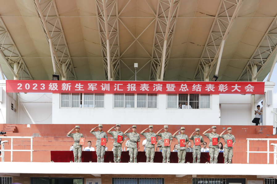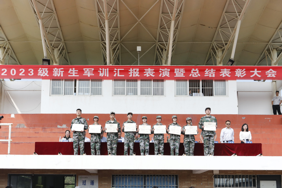 9月17日,乐竞2023级新生军训会操表演暨表彰大会在田径运动场举行。学校党委副书记安进、73106部队严俊教导员出席大会。大会由武装部长李金霞主持。