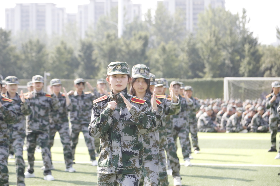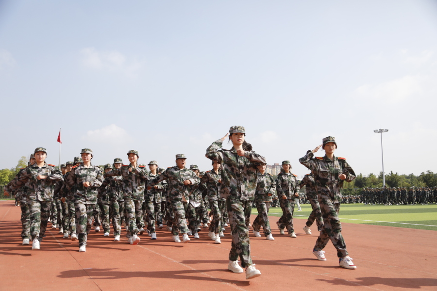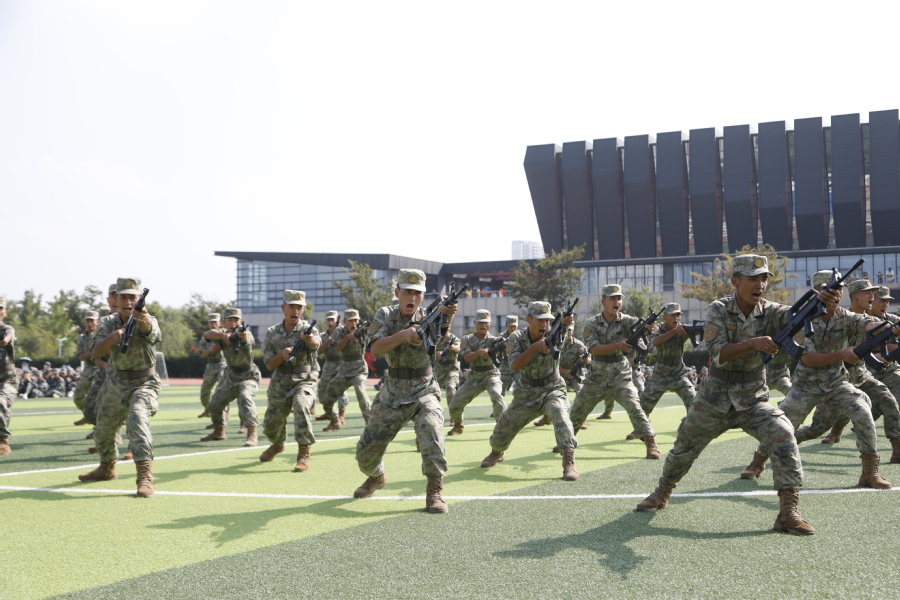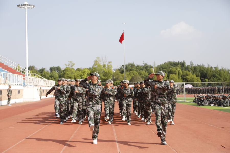 国歌奏响,国旗飘扬,大会在雄壮的国歌声中拉开序幕。“请党放心、强军有我”表演方阵勾勒出“以人为本、立德尚能”的校训;分列式列整齐划一,精神昂扬饱满,充分展现了乐竞学子朝气蓬勃、积极向上的精神面貌;格斗术一招一式有模有样,拳头落得有力,脚步扎得踏实,打出了当代大学生的精神气魄;刺杀操杀声震天,尽显沙场豪情。