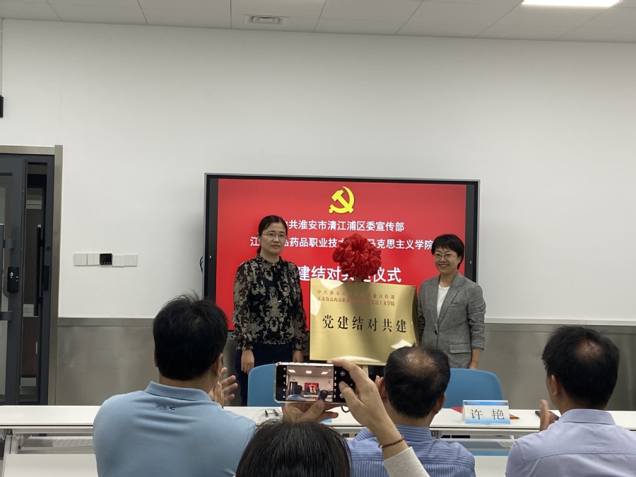 9月25日下午,马克思主义学院与淮安市清江浦区委宣传部党建结对共建签约、揭牌仪式在乐竞举行。清江浦区委宣传部常务副部长许艳一行20多人出席仪式,仪式由马院直属党支部副书记魏艳清主持。