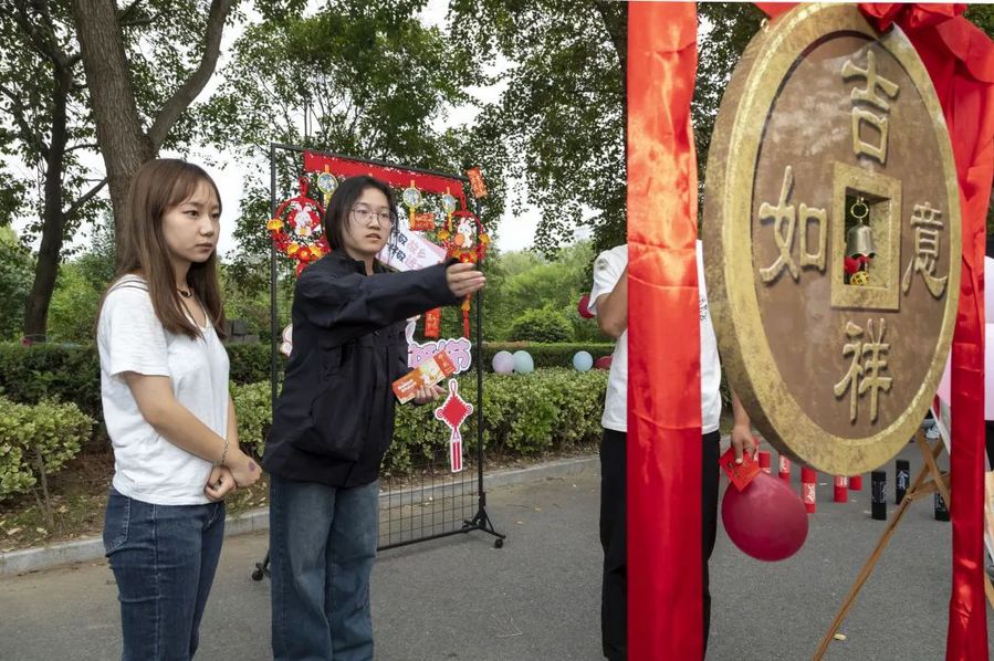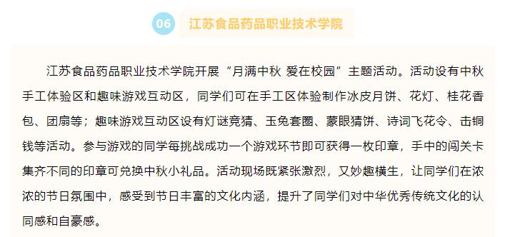 乐竞开展“月满中秋 爱在校园”主题活动。活动设有中秋手工体验区和趣味游戏互动区,同学们可在手工区体验制作冰皮月饼、花灯、桂花香包、团扇等;趣味游戏互动区设有灯谜竞猜、玉兔套圈、蒙眼猜饼、诗词飞花令、击铜钱等活动。参与游戏的同学每挑战成功一个游戏环节即可获得一枚印章,手中的闯关卡集齐不同的印章可兑换中秋小礼品。活动现场既紧张激烈,又妙趣横生,让同学们在浓浓的节日氛围中,感受到节日丰富的文化内涵,提升了同学们对中华优秀传统文化的认同感和自豪感。