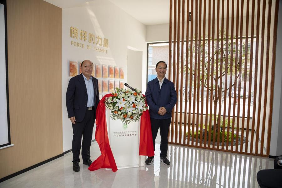 ▲薛宇、安进为一站式学生事务中心揭牌