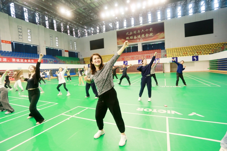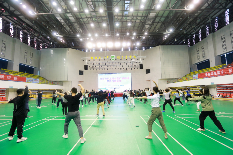 10月13日下午,乐竞承办的淮安市职工第十套广播体操领操员培训在大学生活动中心成功举行。本次培训班由市总工会、市级机关工委、市体育局与乐竞工会联合举办。参训人员跟随高飞燕老师完成最新的第十套广播体操每一个动作的认真学习,培训结业后,他们将负责指导本单位参赛人员的训练工作,为淮安市职工第十套广播体操比赛的顺利开展打好基础。