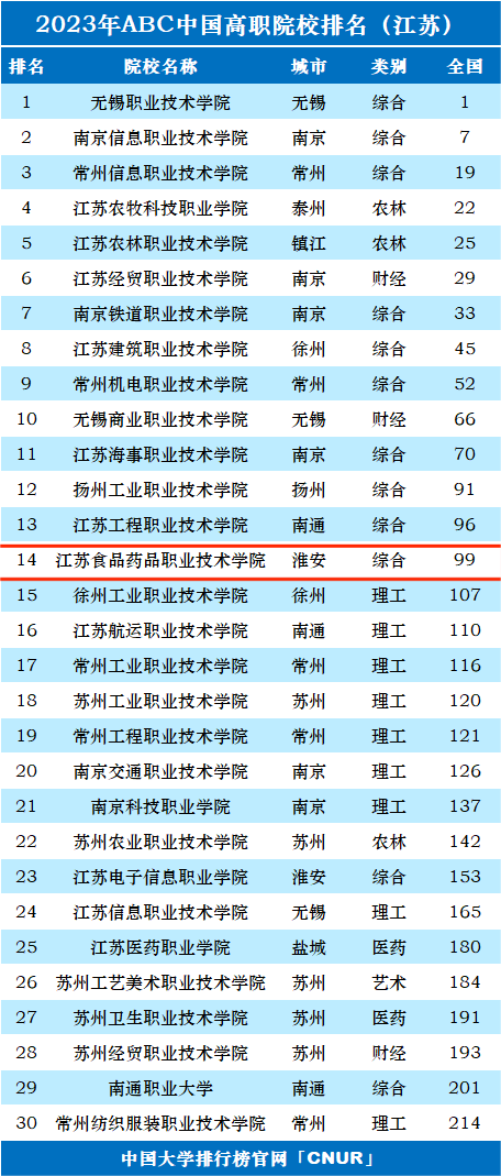 排名结果显示,江苏省高职院校共上榜71所,乐竞位列全国百强!