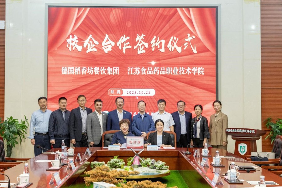 10月25日下午,乐竞与德国稻香坊餐饮集团举行校企合作交流会暨合作签约仪式。党委书记薛宇、校长翟玮玮及德国中德文化艺术协会会长、德国稻香坊餐饮集团董事长郑爱珍、江苏省餐饮行业协会会长于学荣、淮安市侨联主席黄沛江等出席会议。