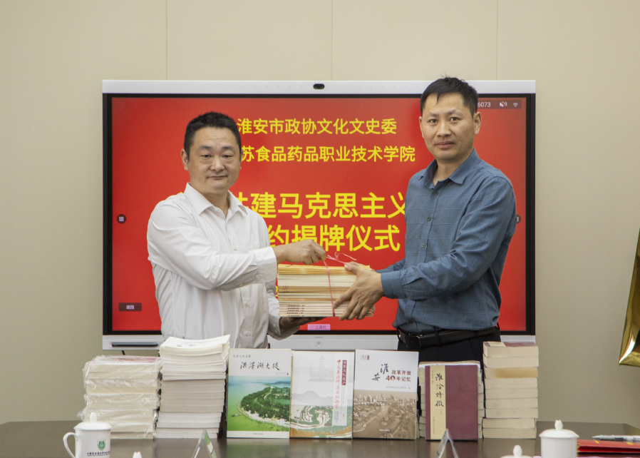 图书馆馆长姜海军代表乐竞接受市政协文化文史委向乐竞赠送的《淮安改革开放40年记忆》等淮安文化文史类书籍共计100套,后期,乐竞将在图书馆设立“政协文史书柜”。