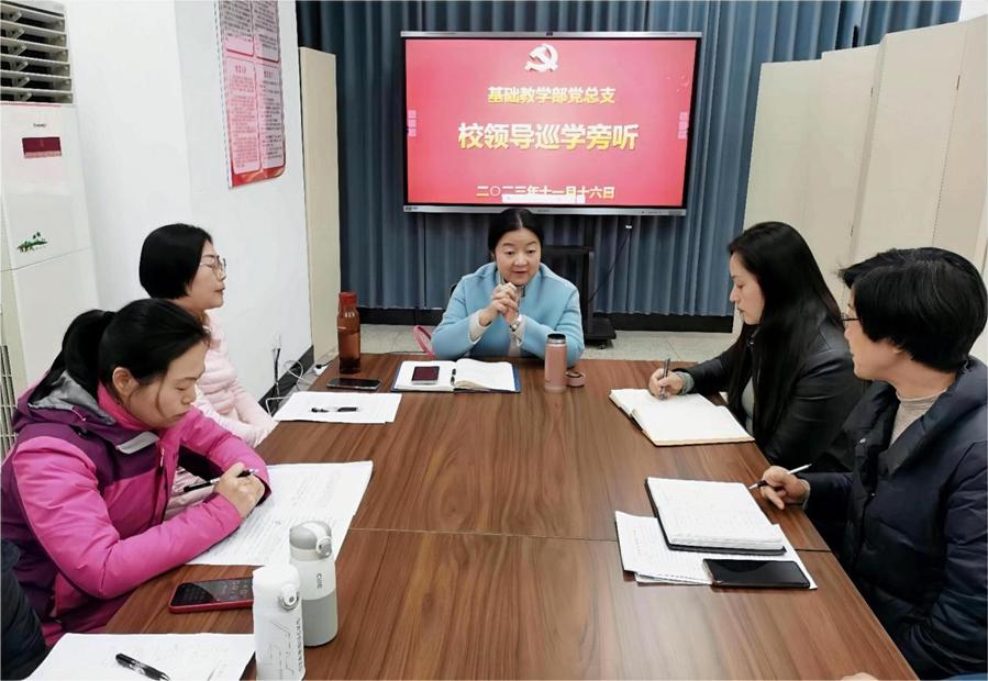 11月16日下午,校党委委员、校长翟玮玮赴基础教学部党总支就学习《乐竞加强党的政治建设实施方案》进行巡学旁听。