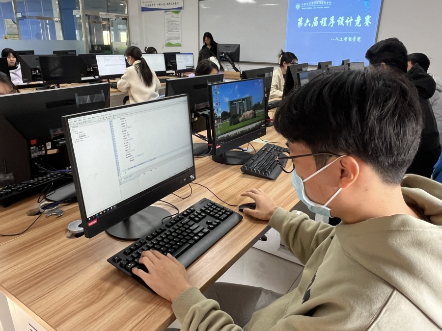11月28日下午,技能竞赛月之程序设计竞赛在1号实验楼20机房举办。