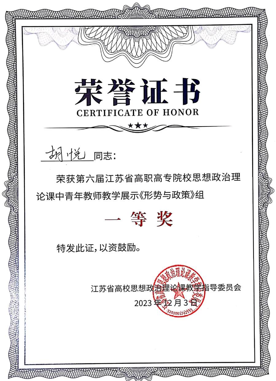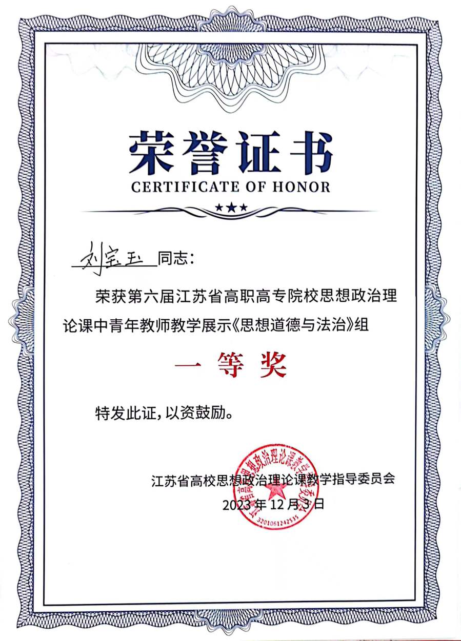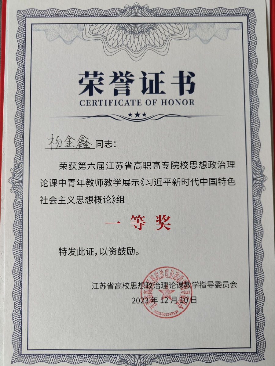 近日,第六届江苏省高职高专院校思想政治理论课中青年教师教学展示活动顺利落幕。经过奋力角逐,乐竞马克思主义学院教师胡悦获《形势与政策》课程组一等奖,刘宝玉获《思想道德与法治》课程组一等奖,杨金鑫获《习近平新时代中国特色社会主义思想概论》课程组一等奖,姜兰获《毛泽东思想和中国特色社会主义理论体系概论》课程组二等奖。