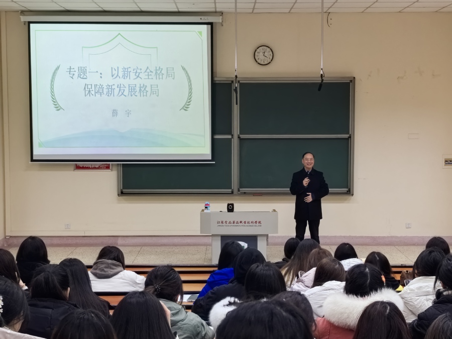 薛宇以“以新安全格局保障新发展格局”为主题,从“保证国家安全是头等大事”“必须坚持总体国家安全观”“开创国家安全工作新局面”三个方面进行剖析。薛宇结合自身多年与药学相关的工作经历,通过生动鲜活的案例进行了深入浅出的讲解,讲述了国家安全的重要性,观点鲜明、视野开阔、内涵丰富、启发性强,同学们对国家新安全格局有了全面清晰的认识。