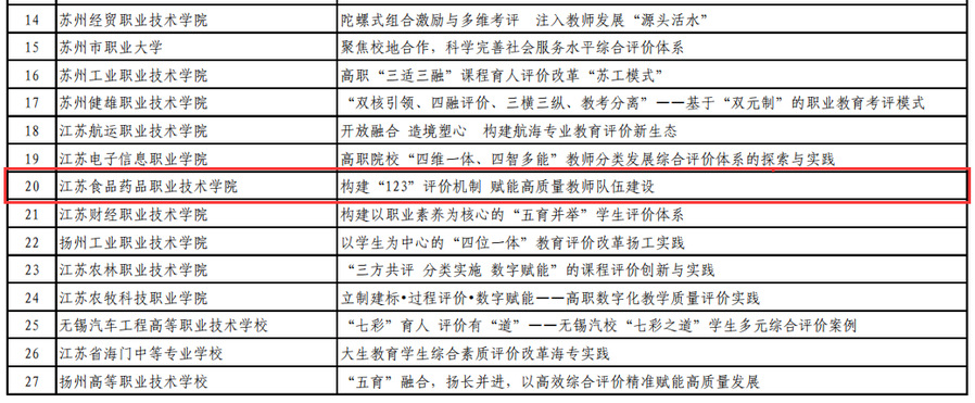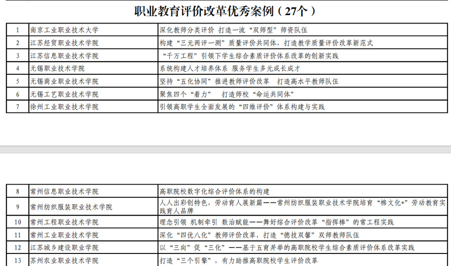 为全面贯彻中共中央、国务院《深化新时代教育评价改革总体方案》和我省实施方案要求,近年来,学校不断深化教师评价改革,立足内涵发展和办学实际,积极推动教师岗位聘用、绩效分配、职称评审等人事管理改革,开展了一系列积极有益的探索和尝试,进一步健全教师评价管理制度体系,对学校高质量发展起到了积极的推动作用,学校也连续两次入选全国高职院校教师发展指数100强院校。