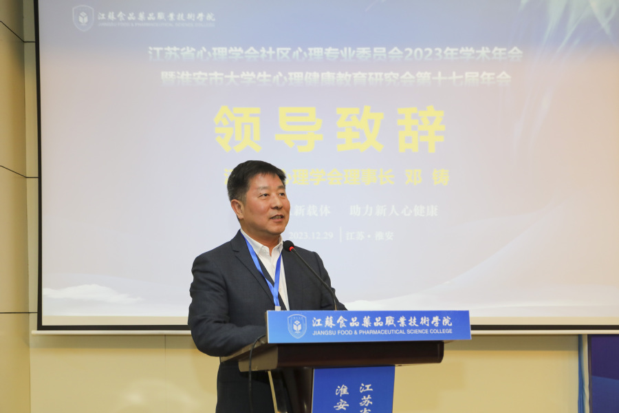 结合大会主题“依托社区新载体 助力新人心健康”,江苏省心理学会理事长邓铸向与会代表介绍了中国社区心理学的发展、江苏省心理学会社区心理专业委员会的建设情况,他表示江苏省心理学会社区心理专业委员会和淮安市大学生心理健康教育研究会联合举办本次大会是一场良好的尝试,江苏省心理学会将充分发挥理论研究优势,全力支持研究成果应用于地方心理健康研究会和大中专院校的心理健康教育工作,共创美好未来。