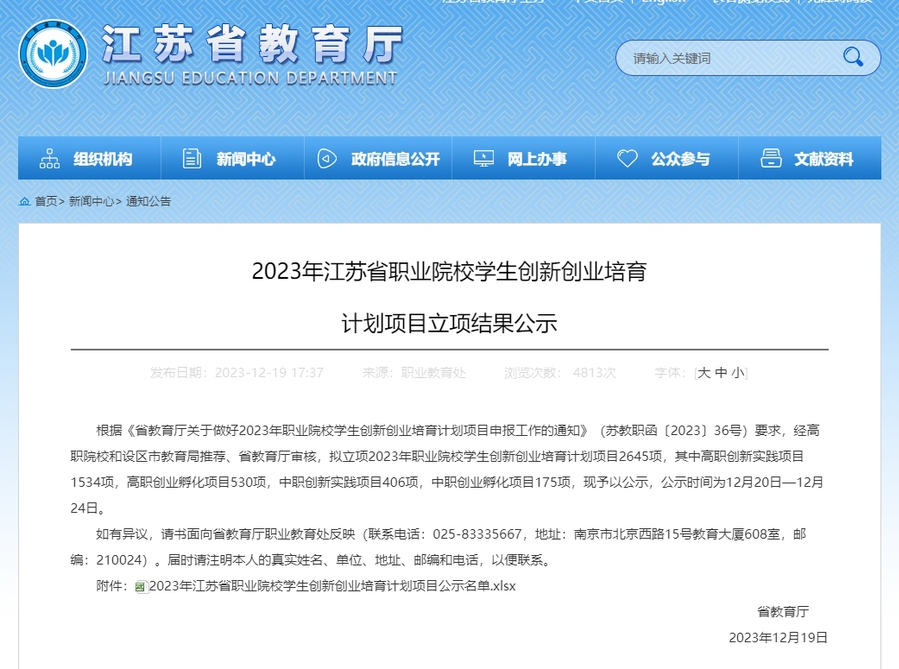今年,省教育厅职教处首次启动了2023年职业院校学生创新创业培育计划项目申报工作,乐竞根据《省教育厅关于做好2023年职业院校学生创新创业培育计划项目申报工作的通知》(苏教职函〔2023〕36号)文件要求,经过有序组织、重点培育、按时申报、专家评审,共推荐了22项创新创业培育计划项目至省厅评选,全部获得立项。