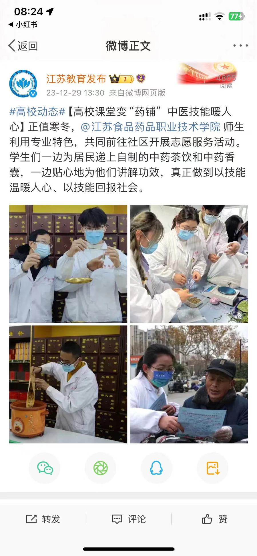 #高校动态# 【高校课堂变“药铺” 中医技能暖人心】正值寒冬,@乐竞 师生利用专业特色,共同前往社区开展志愿服务活动。学生们一边为居民递上自制的中药茶饮和中药香囊,一边贴心地为他们讲解功效,真正做到以技能温暖人心、以技能回报社会。