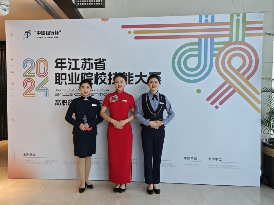 1月5日至1月8日,由江苏省教育厅、江苏省发展和改革委员会、江苏省工业和信息化厅等16个部门主办、南京旅游职业学院承办的“2024年江苏省职业院校技能大赛高职旅游类·酒店服务项目”完成各项赛程,顺利落下帷幕。本赛项为团队赛,由前厅接待服务、中餐宴会服务和休闲餐服务三大模块组成,主要考察酒店管理专业学生的核心技能和相关知识要求。来自全省37所高职院校的111名选手围绕三大模块同台竞技,乐竞酒店学院钱惠新、张丽等教师指导团队共同指导的代真、苏宇鸽、李文静三名同学取得历史性突破,在本赛项中获全省第三名,荣获2024年江苏省职业院校技能大赛高职旅游类·酒店服务项目一等奖,并进入国赛遴选。