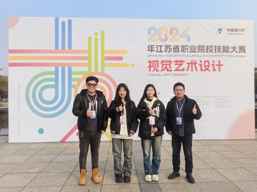 1月8日-9日,江苏省职业院校技能大赛视觉艺术设计赛项在常州纺织职业技术学院火热开赛,来自全省75所职业院校的131支队伍参赛,重点考查选手的设计基础能力、设计创作与表现技能以及创新创意的综合职业素养。经过6个小时的设计制作,乐竞人工智能学院张克成、佟其飞老师指导的张国芮、王敏同学分别喜获一等奖和二等奖!白银老师参加教师组比赛获得二等奖!