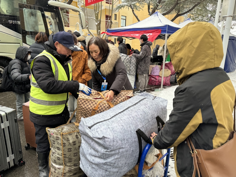 虽风雪交加,但内心“热辣滚烫”。雪中忙碌搬运的身影、宿管阿姨洋溢的笑脸、食堂热气腾腾的饭菜等等,都成为洪泽湖产业学院校园里靓丽的风景线。