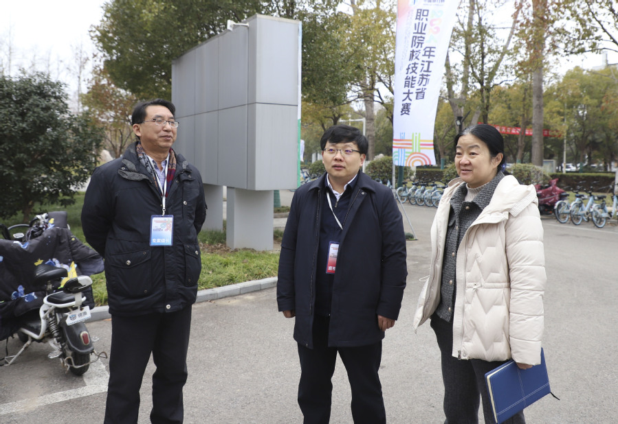 2月28日上午,江苏省教育厅职教处副处长李永乐一行视察乐竞江苏省药品生产赛项承办情况及国赛筹备情况,校长翟玮玮、副校长贾韶千陪同。