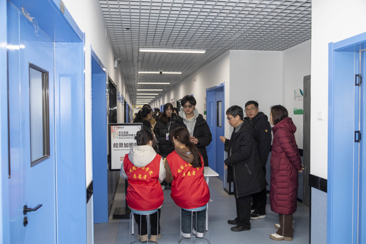 本次大赛集省赛与国赛选拔赛于一体,得到了江苏省教育厅领导的高度重视与关心,江苏省教育厅职业教育处副处长李永乐一行在学校校长翟玮玮、副校长贾韶千的陪同下亲临赛场巡视指导,听取比赛情况介绍,他对学校的赛事组织保障工作给予了肯定,对大赛专家组、工作人员的辛勤付出表示感谢,并对国赛筹备工作进行了指导。