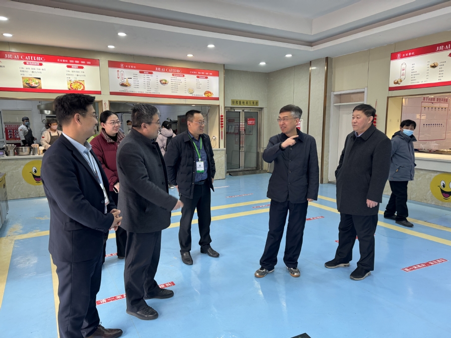 3月13日,淮安经济技术开发区党工委委员、管委会副主任、政法委书记程国民一行来乐竞检查指导学生餐厅安全工作。