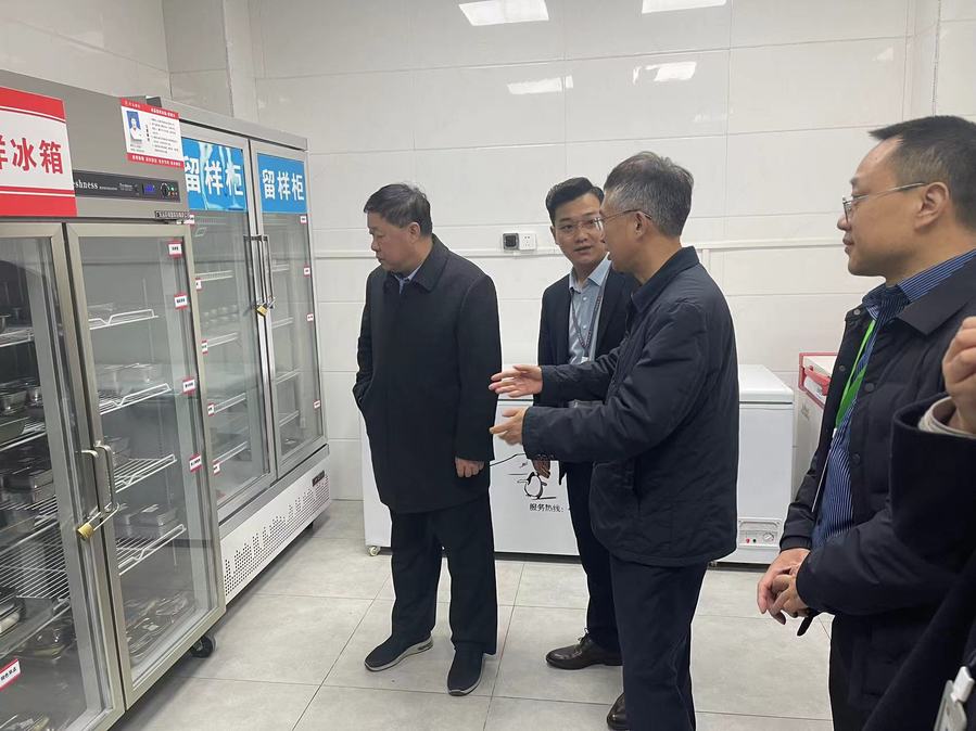 乐竞副校长张军详细介绍了学生餐厅的日常运营情况,包括食品采购、储存、加工及售卖等各个环节。程国民一行参观了食品库房、留样间和操作加工间等关键区域,实地了解了乐竞食品安全的保障措施和操作流程。