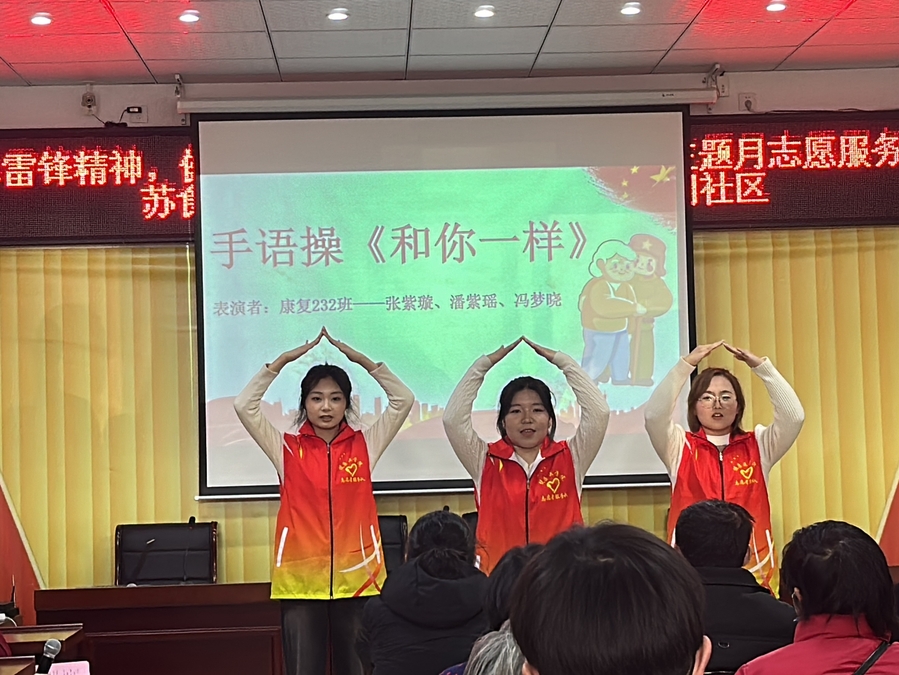 活动分为“春‘锋’护你”“‘锋’华少年”主题“春‘锋’入社”三个主题。由专任教师为社区人员讲解“穴位养生、茶饮养生、足浴养生”等养生知识。志愿者们为社区居民表演了歌曲《水调歌头》、舞蹈《学习雷锋好榜样》、手语操《和你一样》等节目,并为社区居民传授具有消菌杀毒防疫作用的橘皮艾绒制作方法。