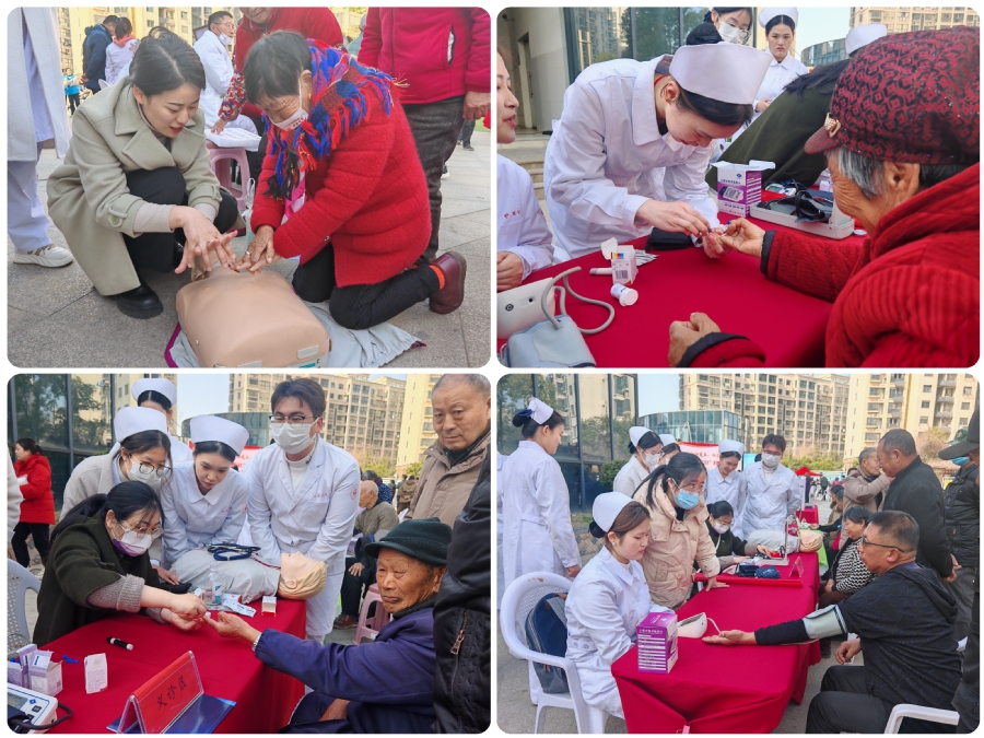 3月19日,是第18个国际社会工作日(简称国际社工日),护理学院师生志愿者走进淮安市滨河社区开展“推动院社联动,关爱一老一小”为主题的社工日活动。活动吸引了众多居民的关注与参与。志愿者们认真仔细地询问、听测、记录被测量者的信息,针对部分居民血压、血糖偏高的现象,耐心为他们讲解高血压与高血糖的危害以及如何预防,并提出合理膳食、戒烟戒酒、适量运动、定期检测、保持良好心态等方面的建议。此外,志愿者们还为社区居民详细讲解了心肺复苏的步骤及要点并进行了现场演示。参加活动的居民通过指导,在仿真模型上进行实操练习,掌握了心肺复苏技巧。