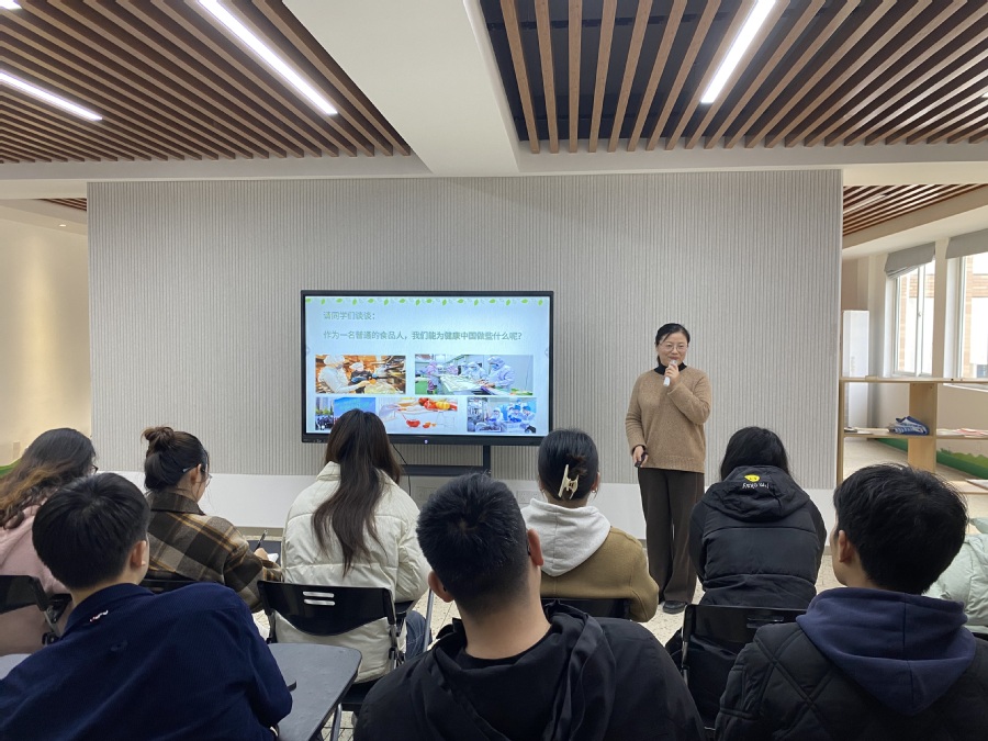 张蓓从个人、社会以及国家发展三个层面进行剖析,理论联系实际,深入浅出、生动形象地剖析了健康是立身之本,更是立国之本,强调人民健康是民族昌盛和国家强盛的重要标志;与同学们一起交流讨论食品营养健康、食品安全方面的相关知识,引导学生不仅要做自己健康的第一责任人,更要找到自己在“健康中国”大目标中的位置和责任,为建设 “健康中国”作出食品人应有的贡献。