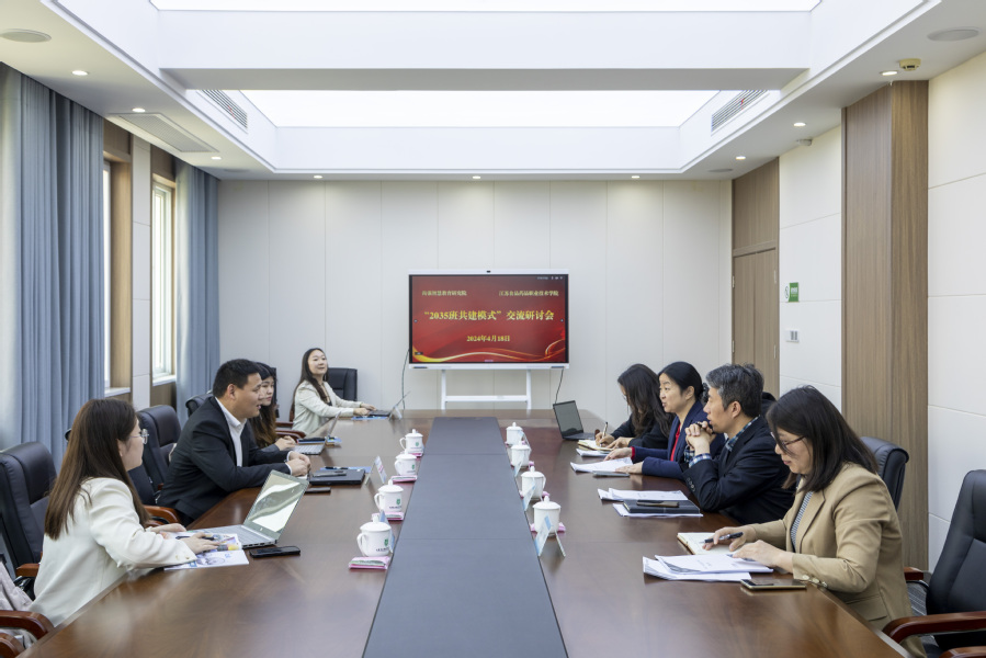 翟玮玮代表学校对来访专家表示热烈欢迎,并介绍与会人员及学校基本情况。李佳钰就“2035”职教师资培训班的建设背景、建设意义和构建思路作详细介绍。孙永正主任结合项目前期调研情况和已有实践项目经验,分享交流了“金师”建设的体系化设计思路、课程体系建设和具体实施方案。双方就如何优化教师培养方案、完善课程模块、专家团队建设和成果评价等方面进行了深入探讨与交流。