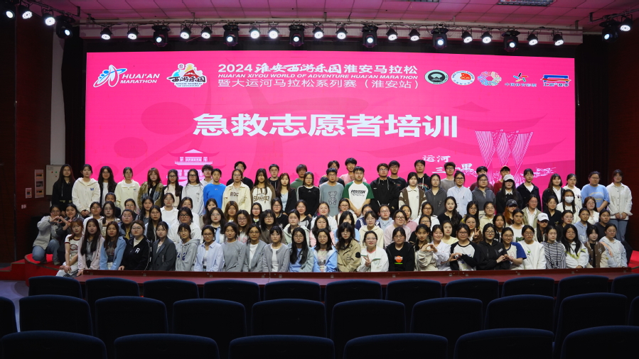 4月21日清晨7:30,随着一声发令枪响,2024淮安西游乐园马拉松暨大运河马拉松系列赛在淮安市政务服务中心拉开了帷幕。赛道上,参赛选手用脚步与城市同频共振,赛道旁,护理专业学生志愿者用所学专业知识为每一位参赛选手保驾护航。