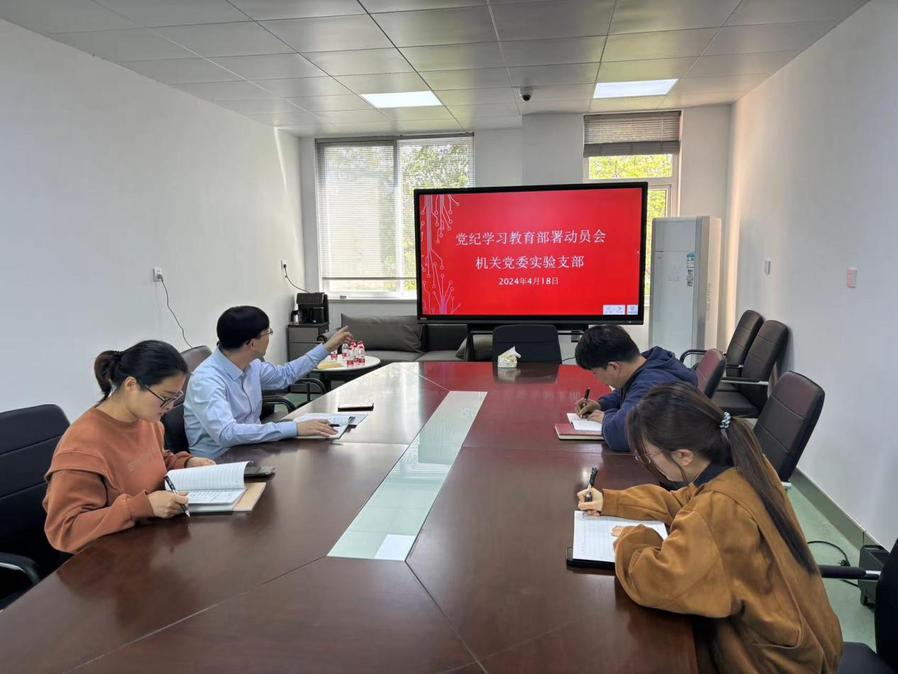 4月18日下午,机关党委实验支部在2号实验楼217会议室召开党纪学习教育部署动员会。会议由孙芝杨主持。