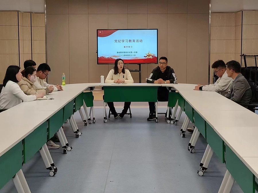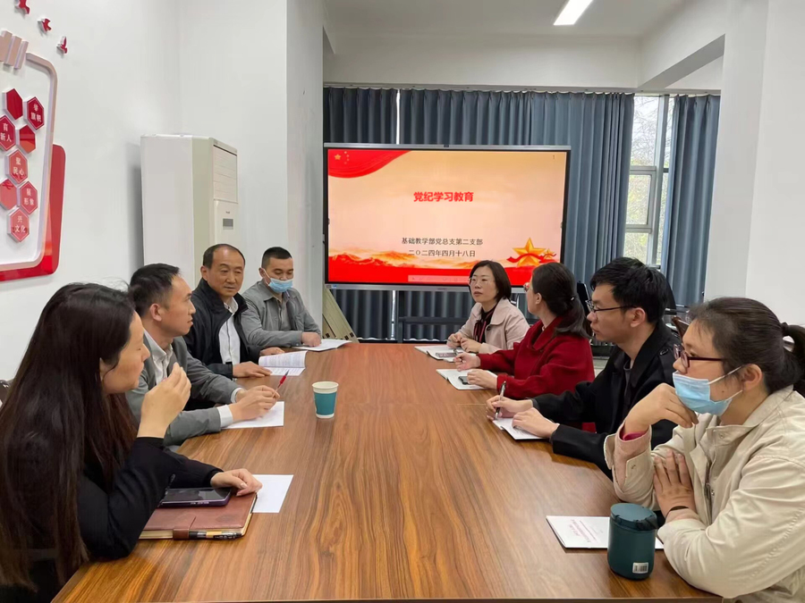 为贯彻落实中共中央办公厅关于党纪学习教育的文件精神,根据学校总体部署,4月18日,基础教学部党总支各支部组织支部党员开展党纪学习教育活动,基础教学部全体班子成员参加了所在支部的学习。