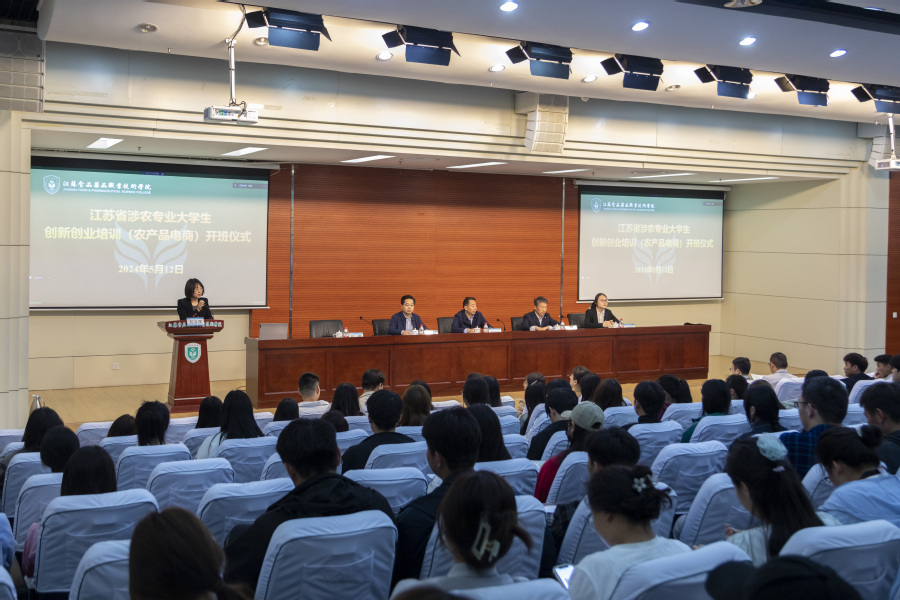 5月12日上午,2024年度江苏省涉农专业大学生创新创业培训(农产品电商)在乐竞图书馆报告厅开班。江苏省农业广播电视学校淮安市分校校长邢国文、乐竞副校长贾韶千出席开班仪式。