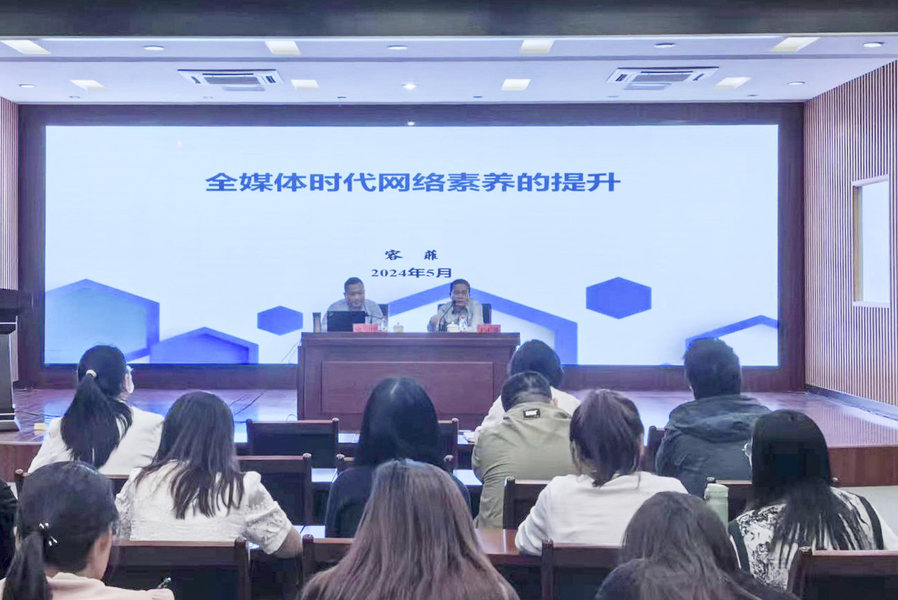 容菲以“全媒体时代网络素养的提升”为题,从网络意识形态、舆情探究、舆情处置重要环节、具备能力素养以及敏感典型案例五个方面探讨如何增强互联网思维,有效做好舆情引导工作。