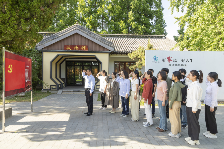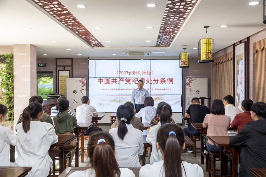 最后,在政德馆门前广场,全体党员面向党旗,以铿锵有力的声音重温入党誓词。大家纷纷表示要把党纪学习融入到学习工作中,真正做到知敬畏、存戒惧、守底线,以忠诚干净的实际行动,投身学校高质量发展的建设之中。