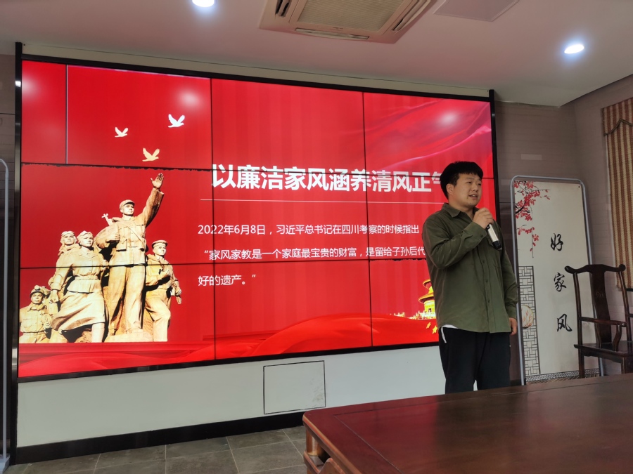 清风苑廉政教育基地以“清涟水韵”贯穿全馆,全馆分为政德馆、家风馆、廉洁微课堂三个展厅。在讲解员的带领下,全体师生参观了政德馆和家风馆,重温涟水清官廉史故事,学习“涟六条”和家风家训,深刻领会家风传承的丰富内涵和时代价值。参观结束后,全体师生观看《奋力破解独有难题》警示教育片;党总支书记王涛济在廉洁微课堂展厅为全体党员师生上解读《中国共产党纪律处分条例》党纪学习教育主题党课,并强调党纪学习要原原本本学、融会贯通学、联系实际学,引导师生要知法、懂法、知纪、守纪;辅导员陈磊开展《制药“青·廉”说》第一期,作“传承廉洁家风,争做自律青年”汇报,倡导全体青年师生成为廉洁家风的传承者,扣好廉洁自律的“第一扣”,系好廉洁自律的“安全带”。
