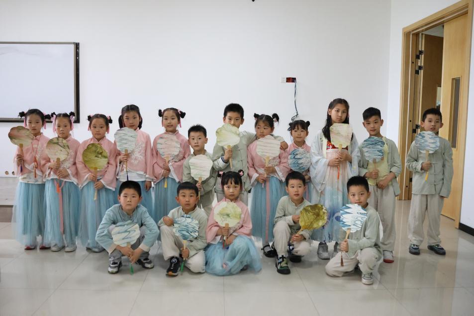 活动首先为各位小朋友们讲解了中药文化体系的形成和中药在生活中的妙用,教同学们辨认了生活中常见的十种药材。然后引导学生们发挥想象,就地取材,利用不同的药草创作属于自己的手贴画作,充分发挥学生们的主观能动性和创造力。随后老师和同学们共同制作了花草蛋,将时令文化特点与中药传统知识相结合,这对小朋友们来说既是一次有趣的尝试,也是一次对自然之美的深刻体验;最后老师们带着孩子们体验天然大漆制作的独一无二的扇面,每个人的图案都非常的别致,充满了意境。