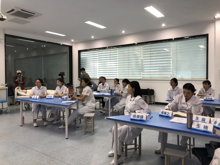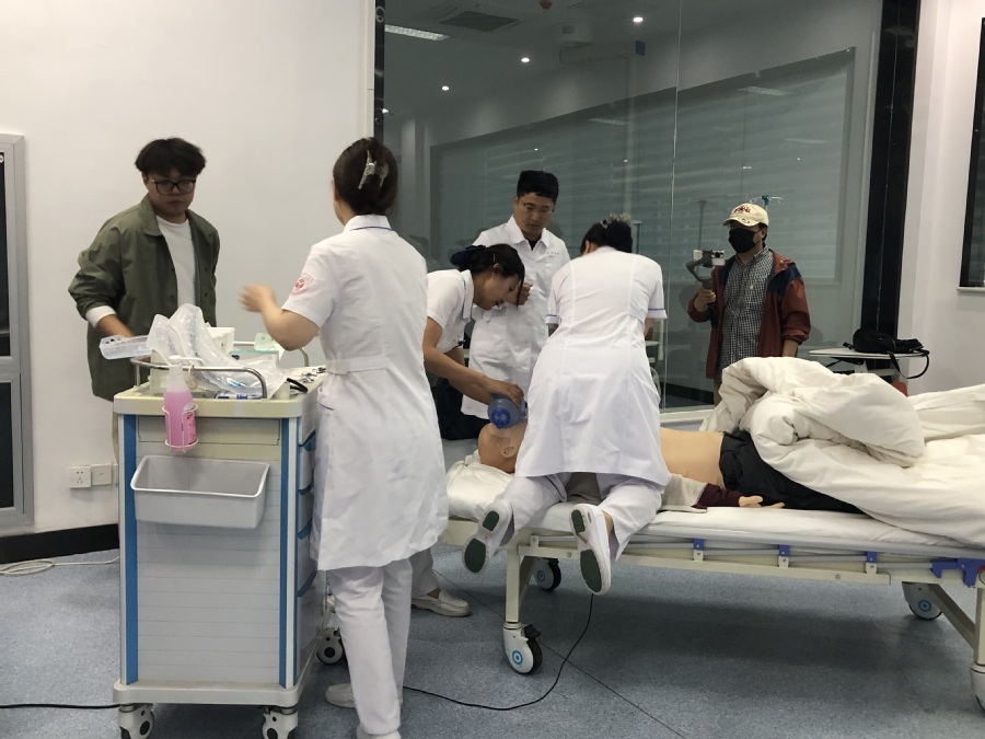 理论授课后,授课老师以2个小组准备的教学案例为基础,通过案例运行,带领老师们进行了护理模拟教学案例的完整运行。