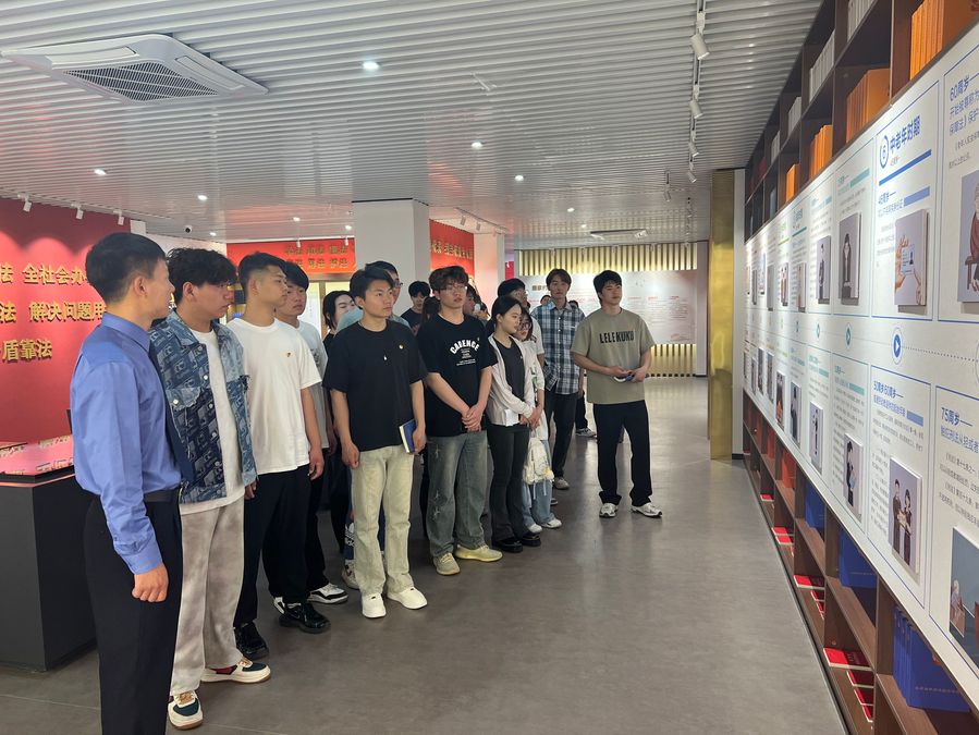 在工作人员的带领下,大家先后参观了未检工作展示区、普法体验区、法治文化区以及宪法宣传教育馆。未检工作展示区结合一个个鲜活的案例,以案释法,为同学们上了一堂生动的法治课;普法体验区通过模拟法庭、禁毒教育区、网络安全教育区等模块,增强了学生的法治意识;在法治宣誓区,同学们以生命的名义庄严宣誓,做一名遵纪守法的合格公民;在宪法宣传教育馆,同学们明确了宪法赋予的权利与义务,加深了对全面依法治国的了解。参观结束后,大家穿上法袍、制服,担当“法官”“检察官”“辩护律师”“原告”“被告”等角色,在模拟法庭 “沉浸式”体验了一起“校园寻衅滋事”案件的庭审过程,亲身感受到了法治实践的魅力以及法律的神圣和庄严。