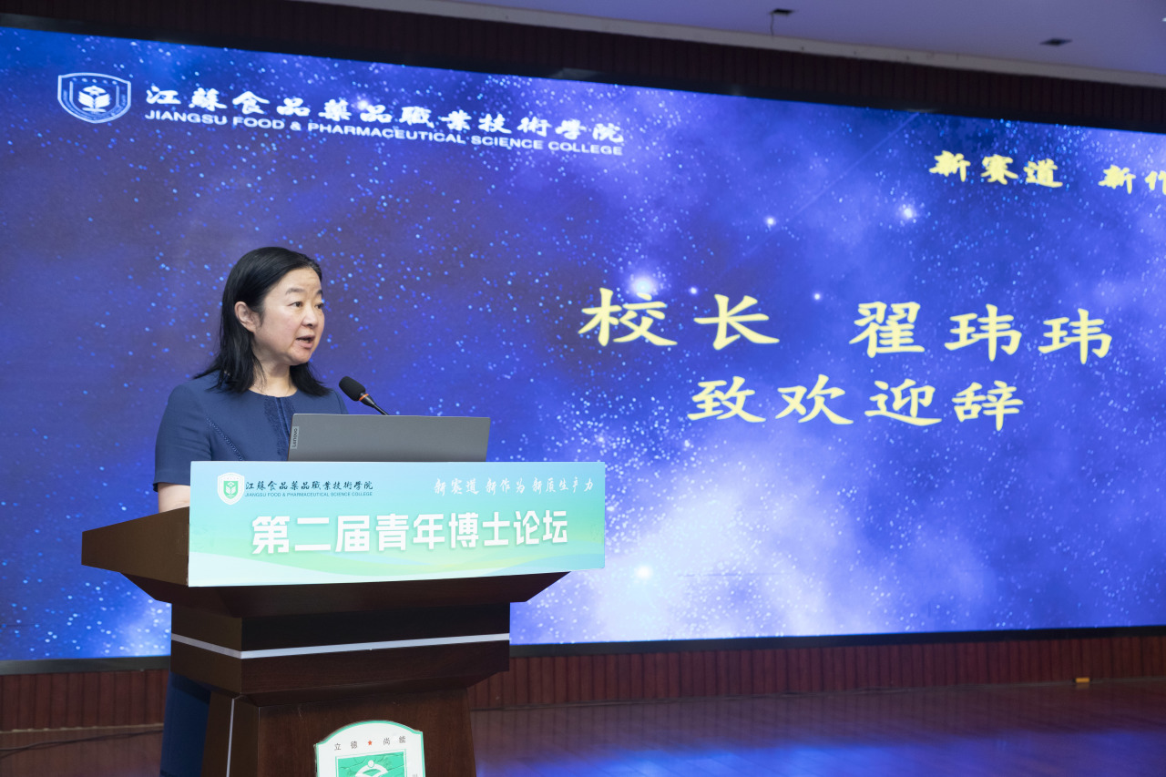 本次论坛由主论坛、分论坛和校内外参观考察三部分组成。在主论坛开幕式上,校长翟玮玮首先致欢迎辞,她对参加本次论坛的各位领导、博士、专家学者表示最热烈的欢迎和最诚挚的感谢。翟校长表示,新时代,新征程,新使命,全体乐竞人正持之以恒为建成富有“行业典范、中国特色和世界影响”的一流食品药品类职业技术本科大学的目标奋斗,学校对优秀人才的需求比以往任何时候都更为迫切,期待海内外优秀人才加盟学校,赋能学校发展,共攀学术高峰,共同创造学校美好明天。