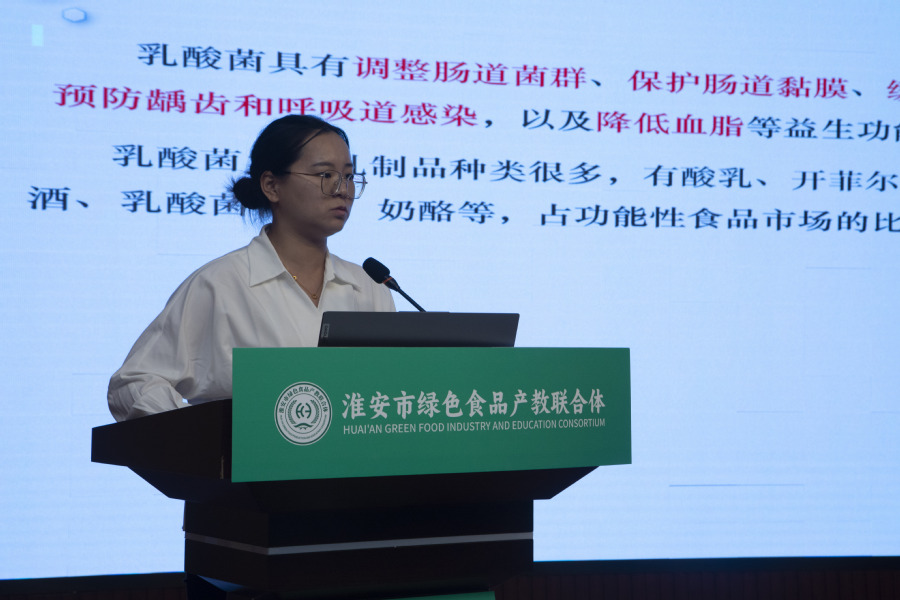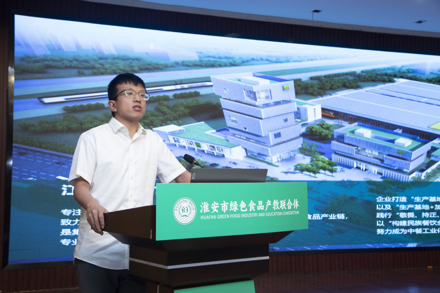 有需求就会有供给,供给满足了需求,才能实现市场的良性运转。联合体成员院校在产学研合作中也积累了丰富的成果,为了有针对性地满足企业技术需求,实现技术成果的转化应用,服务淮安市绿色食品产业发展,淮阴工学院、江苏财经职业技术学院和乐竞代表联合体院校依次上台进行技术供给成果路演。