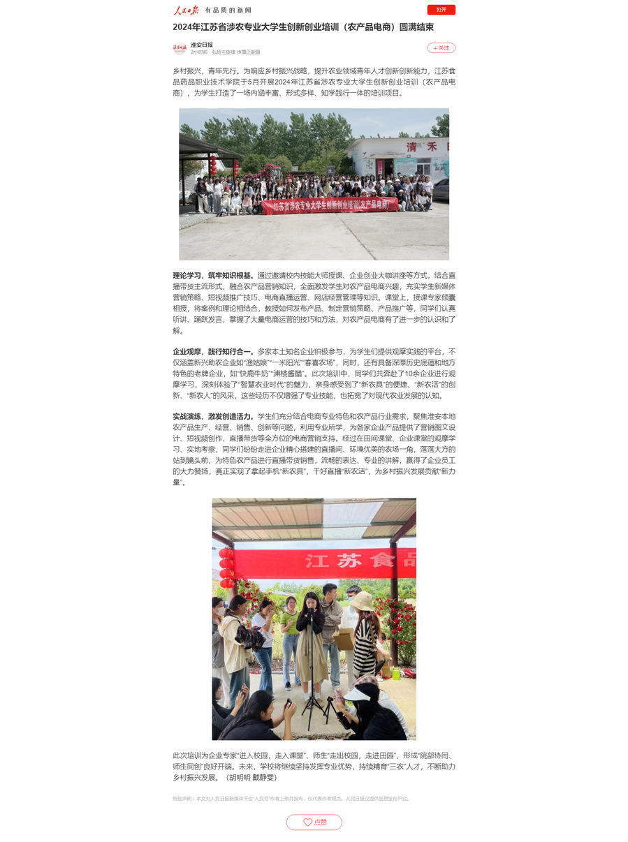 乡村振兴,青年先行。为响应乡村振兴战略,提升农业领域青年人才创新创新能力,乐竞于5月开展2024年江苏省涉农专业大学生创新创业培训(农产品电商),为学生打造了一场内涵丰富、形式多样、知学践行一体的培训项目。