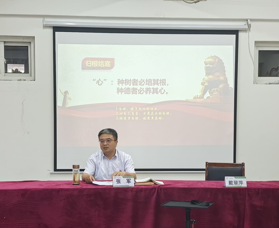 张军围绕《中国共产党纪律处分条例》上了一堂生动的党课,他用十个方面警醒畅谈个人学习心得,并结合身边的典型案例,提醒共产党员时时刻刻做到自省自律,要学习把握《中国共产党纪律处分条例》(以下简称《条例》)特点,争做遵守《条例》模范,最后,他激励全体教师要以国赛金牌为目标,全力拼搏、奋起直追。