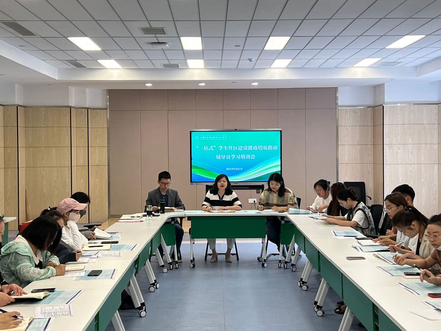 为更好落实《高校“一站式”学生社区综合管理模式建设提质增效指南》,推动学生工作品牌项目建设,5月31日上午学工处开展了“一站式”学生社区建设提质增效指南辅导员学习培训会,培训由学工处处长李金霞主讲。
