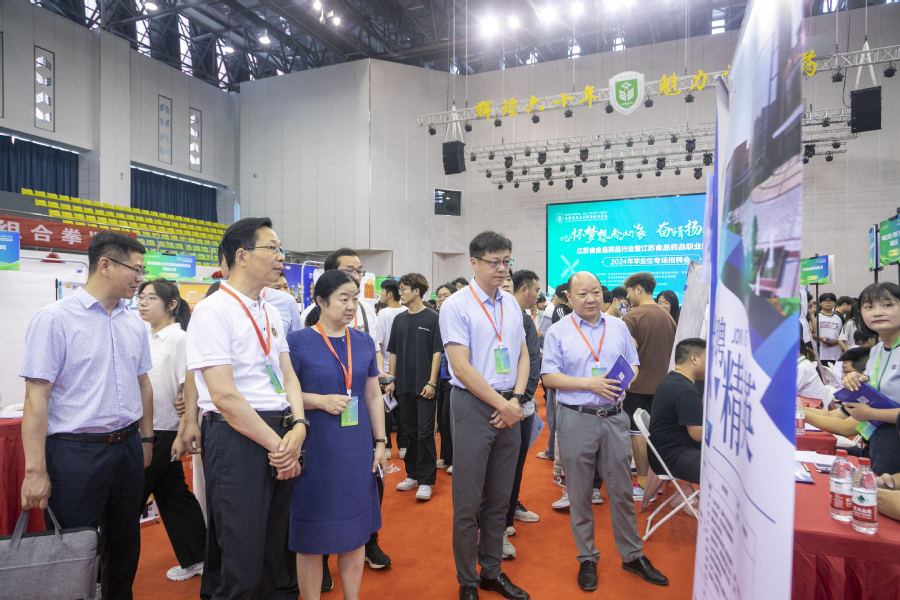 6月16日,江苏省食品药品行业暨乐竞2024年毕业生专场招聘会在乐竞体育馆举行。此次招聘会由江苏省高校招生就业指导服务中心、中国食品产教融合共同体、淮安市人力资源和社会保障局和乐竞共同主办。江苏省高校招生就业指导服务中心副主任黄炜,淮安市人力资源和社会保障局局长曹曙春莅临现场,乐竞党委书记薛宇、校长翟玮玮、党委副书记安进、副校长贾韶千共同前往现场指导。市人社局、市人才中心相关领导陪同。