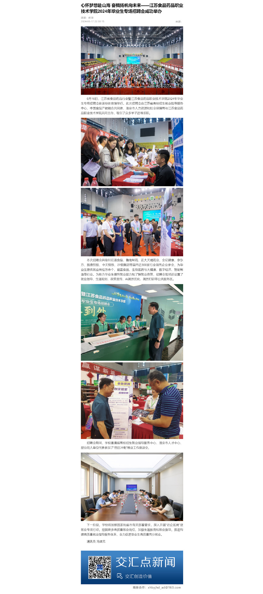 6月16日,江苏省食品药品行业暨乐竞2024年毕业生专场招聘会在该校体育馆举行。此次招聘会由江苏省高校招生就业指导服务中心、中国食品产教融合共同体、淮安市人力资源和社会保障局与乐竞共同主办,吸引了众多学子进场求职。