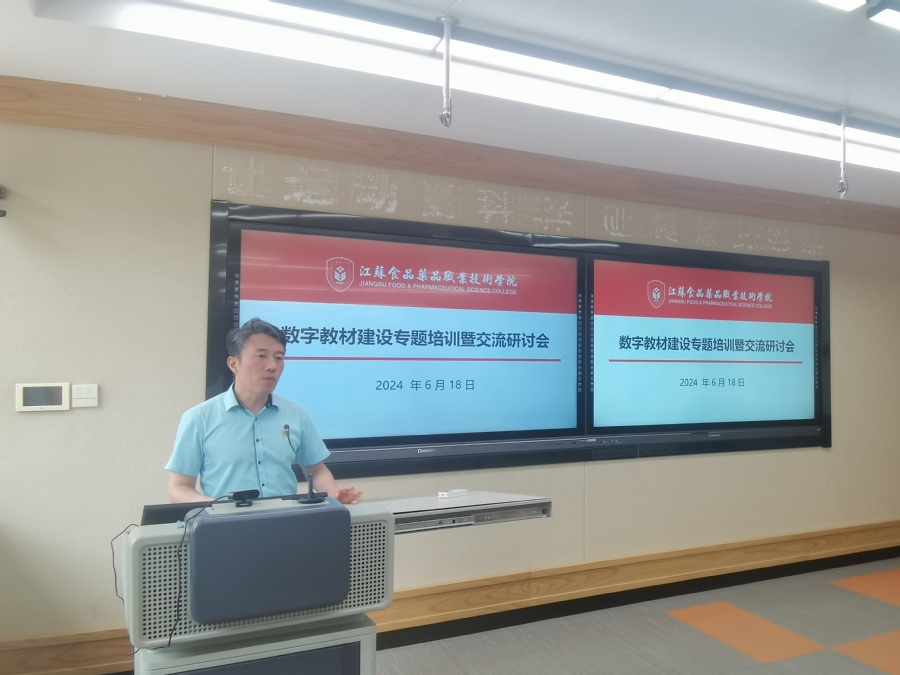 为推动教育数字化转型,进一步提高教师数字教材的认识和开发能力,6月18日下午,学校在智慧教室B208组织开展数字教材建设专题培训暨交流研讨会,特邀科学出版社职教技术出版中心首席编辑王建洪主讲。培训会由教务处副处长拾以超主持,副校长贾韶千出席会议。