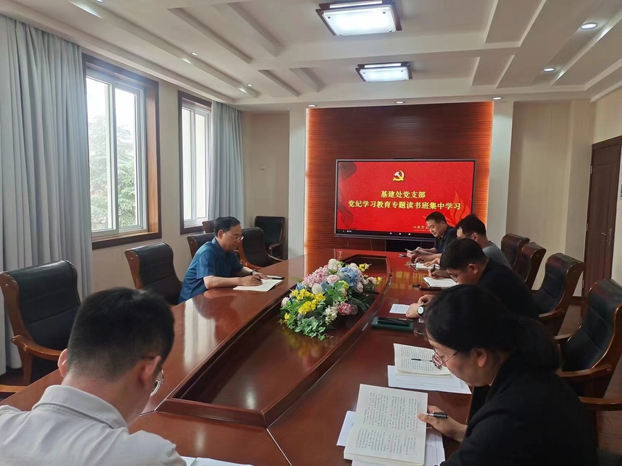 6月19日上午,校党委书记薛宇参加基建处党支部党纪学习教育集中学习,学习活动由支部书记张杰主持。