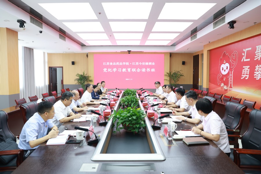 为深入推进党纪学习教育走深走实,进一步推进江苏“百所高校对接千个产业链党建联盟”行动,7月11日上午,乐竞党委与江苏今世缘酒业股份有限公司党委开展党纪学习教育联合读书班。校企双方党委班子成员集体参加了联学活动,联学活动由乐竞党委书记薛宇主持。